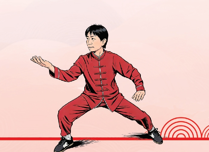 太极拳经典动作“野马分鬃”。