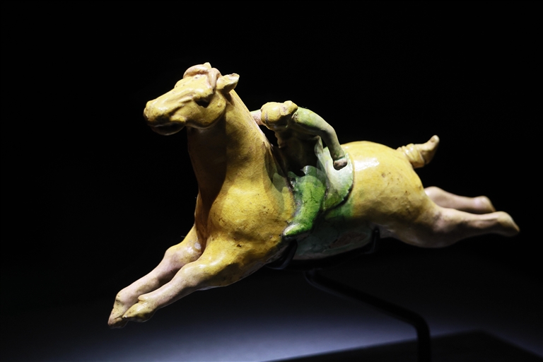 汉代绿釉勇士骑飞奔马俑