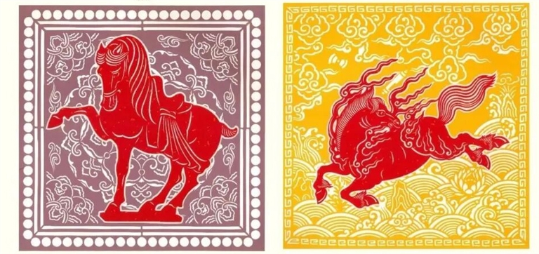 马是剪纸的传统题材之一。剪纸艺人常通过谐音、象征等手法,赋予马吉祥美好的寓意,比如“马上封侯”“马到成功”“马上报喜”等。郑州市级非遗代表性传承人袁升科推出的《纸上驰骋·丙午剪马原创剪纸系列》,将生肖马与中华千年文物汉代青铜马踏飞燕、南北朝彩绘陶马、唐代三彩马、宋代宋陵石马、明代瓷器海马纹、清代郎世宁《万吉骦》等巧妙融合,让静态的纸张承载起动态的历史叙事,不仅展示了剪纸艺术的精湛技艺,更让古老的文物在当代焕发新生。
