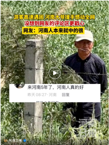 视频中,隔着绿化带 游客大声问这位大爷: “您贵姓?这是哪里?” 大爷笑着答道: “南曹乡前孙村,免贵姓孙。” 游客将这段经历发布到网上后 迅速引发广泛关注 在网友的接力寻找下 这位好心大爷很快被找到—— 他就是72岁的孙荣垛 近年来 南曹乡大力推进“和美南曹” 乡风文明建设 将“邻里互助、乐于助人” 写入村规民约 通过评选“文明家庭” 设立“乡村光荣榜”等多种形式 让淳朴、厚道、热心 成为全乡最鲜明的底色 “在我们村,谁家有困难 喊一声,附近乡亲都会搭把手。” 前孙村一位村民说 “大爷这事传到村里 大家都说 这不就是咱南曹乡人 常做的事嘛。” 据悉,南曹乡将以此契机 进一步挖掘、宣传 百姓间的互助故事 用“小故事”传递“大文明” 让文明乡风成为南曹乡 乡村全面振兴路上最动人的风景