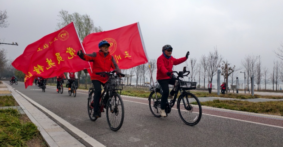 本台讯 3月4日,周口市引黄调蓄湖风景区彩旗飘扬,热闹非凡。由市教育体育局与市城乡一体化示范区联合主办的2026年周口市全民健身大拜年“骑乐无穷 环湖迎新”自行车骑行活动在这里启幕。来自全市的近200名骑行爱好者齐聚一堂,用激情开启健康生活的新篇章。