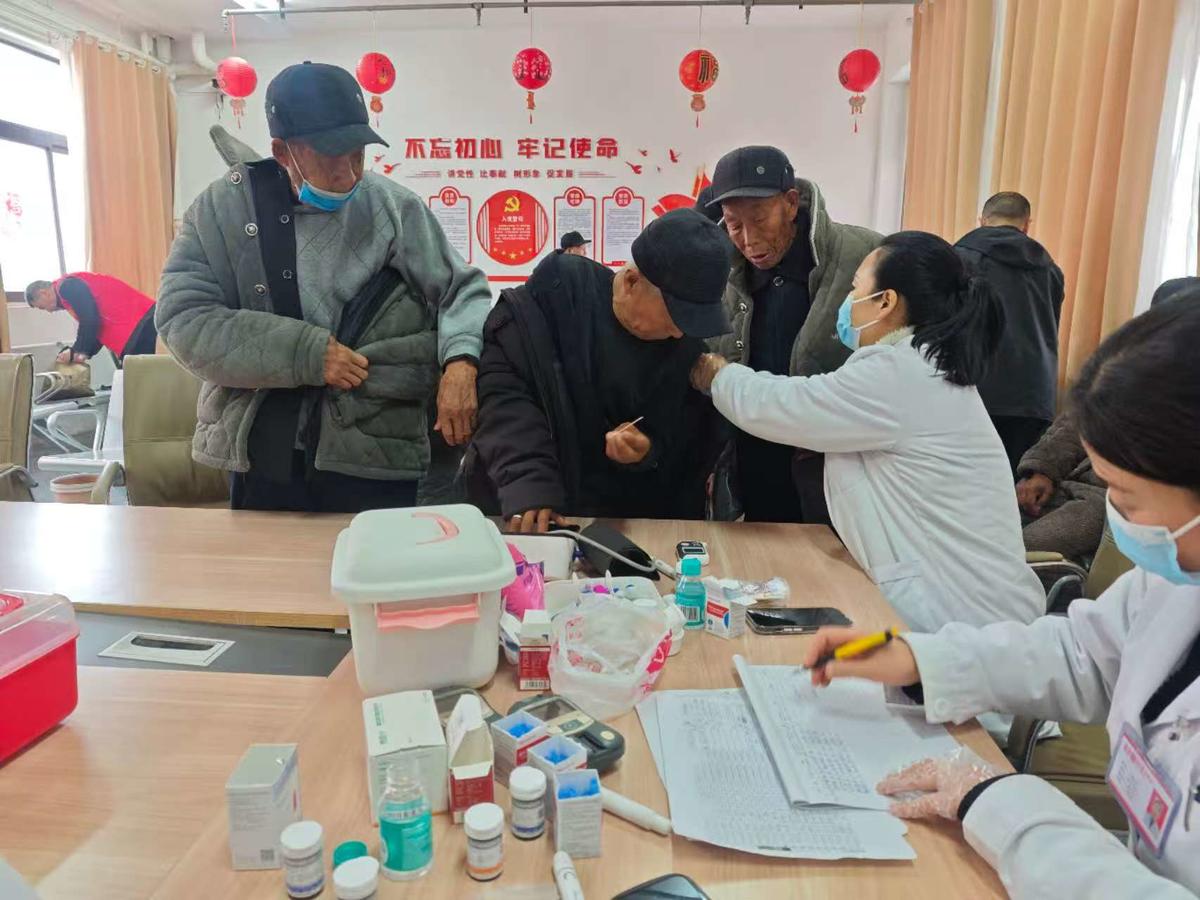 在义诊区,爱心药店工作人员设立义诊台,为老人们免费测量血压、血糖,耐心讲解常见病预防、合理用药及健康养生知识,细致解答健康咨询,用专业服务守护老年人身心健康。