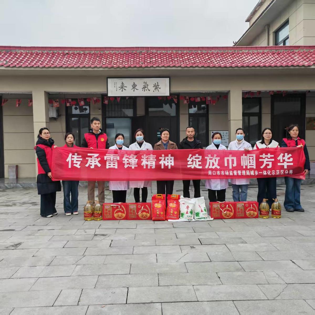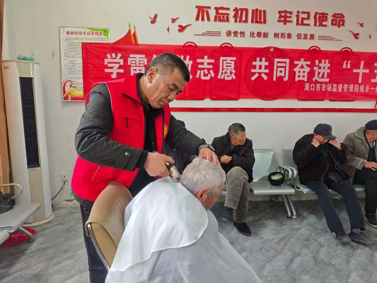 本台讯 为深入贯彻“学雷锋 树新风”主题活动的通知精神,大力弘扬“奉献、友爱、互助、进步”的志愿精神,3月4日,周口市市场监管局示范区分局组织党员干部志愿者,联合辖区爱心药店走进许湾养老院,开展敬老志愿服务活动,以物资捐赠、义诊、义剪等实际行动践行雷锋精神,传递温暖与关怀。