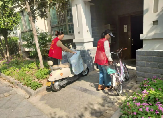 清理现场,社区干部与物业工作人员分工协作、协同发力,分成楼道清理、车辆规整、垃圾清运3个专项小组,对示范区辖区内居民楼楼道、小区公共区域、消防通道、非机动车停放区进行全方位、无死角排查整治。针对楼道内、楼梯转角处长期堆放的旧家具、废弃家电、闲置生活用品、建筑垃圾、纸箱杂物等,工作人员逐一清点、耐心搬运、分类处置,彻底打通堵塞的消防通道与居民出行通道;针对小区内乱停乱放的电动车、自行车、僵尸车,工作人员逐一规整摆放,全面理顺社区停车秩序,保障消防通道、人行通道全程畅通。