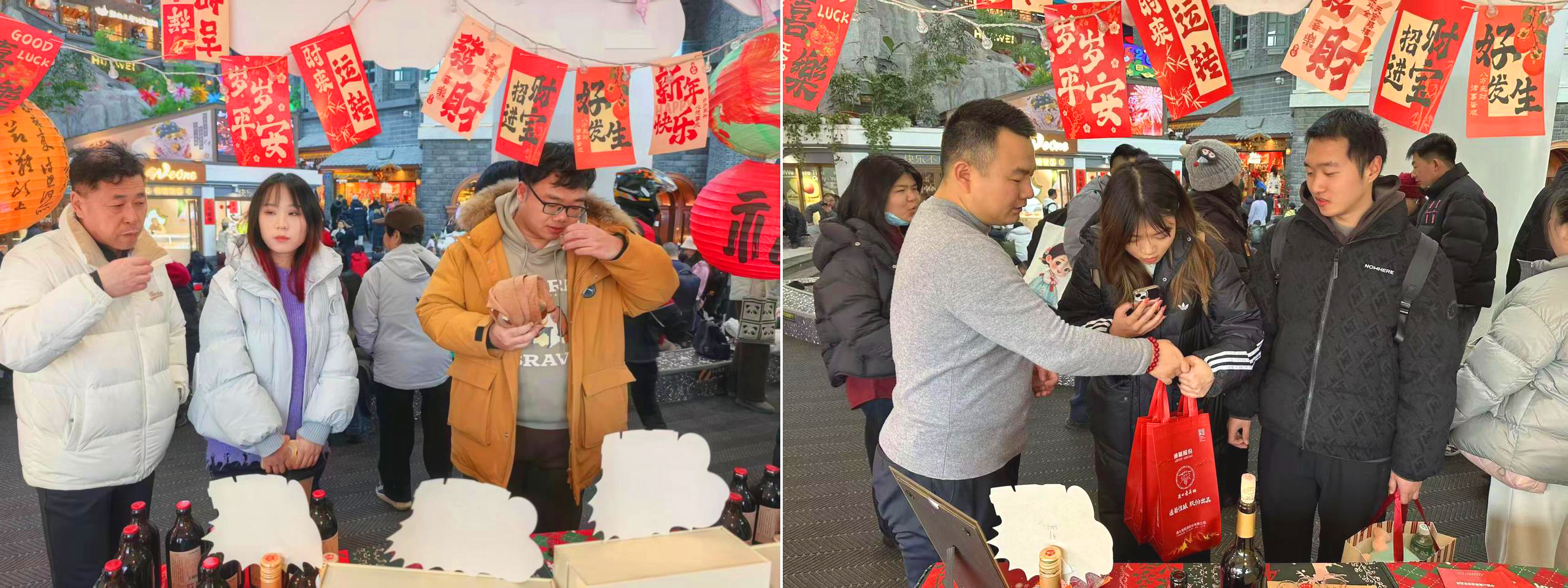 线下市场的热度尤为直观,在长春“这有山”商场及“商埠地历史文化街区”年货大集中,通化葡萄酒的展位前出现多次排队抢购的场景。在这场充满年味与文化气息的盛事中,通化葡萄酒展位都成为了当之无愧的“流量中心”。