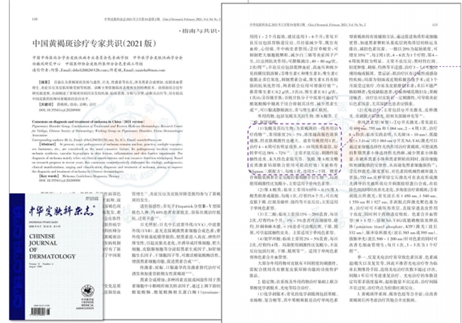 [2].中国中西医结合学会皮肤性病专业委员会色素病学组等. 中国黄褐斑诊疗专家共识(2021版). 中华皮肤科杂志. 54(2):110-114.