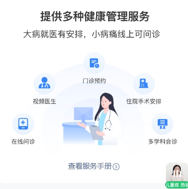 多元健康服务:提供视频问诊、门诊预约、住院手术安排、多学科会诊等服务,解决“挂号难、就医慢”的问题;