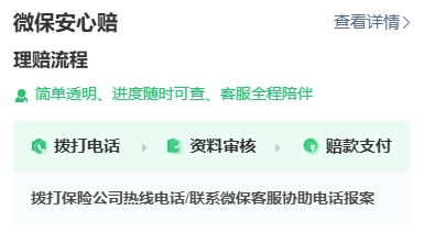 微保安心赔:理赔全程有1对1管家协助,在线提交资料后,保险公司将按流程审核,确保理赔高效透明。