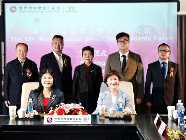 第十二届世界大学女校长论坛合作备忘录签署仪式6日在广州鸣泉居成功举办,世界大学女校长论坛组委会执行主席陈维嘉、现代女性领导力研究院理事长才华、澳门科技大学协理副校长梁文慧等共同出席签约仪式。
