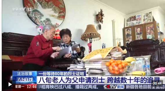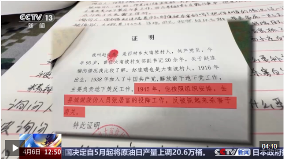 赵全玺:后来我老伴就把这材料拿给我,就反复看,又对照了一些材料,我觉得父亲应该是正儿八经办烈士应该没问题,这就下决心。
