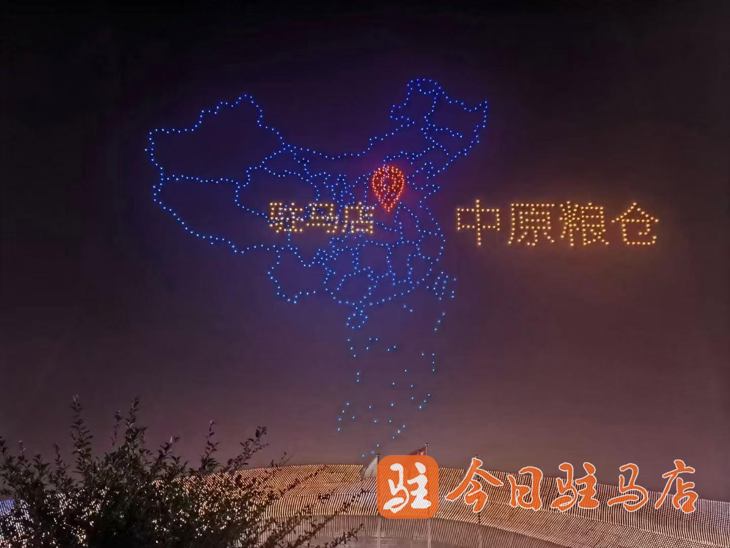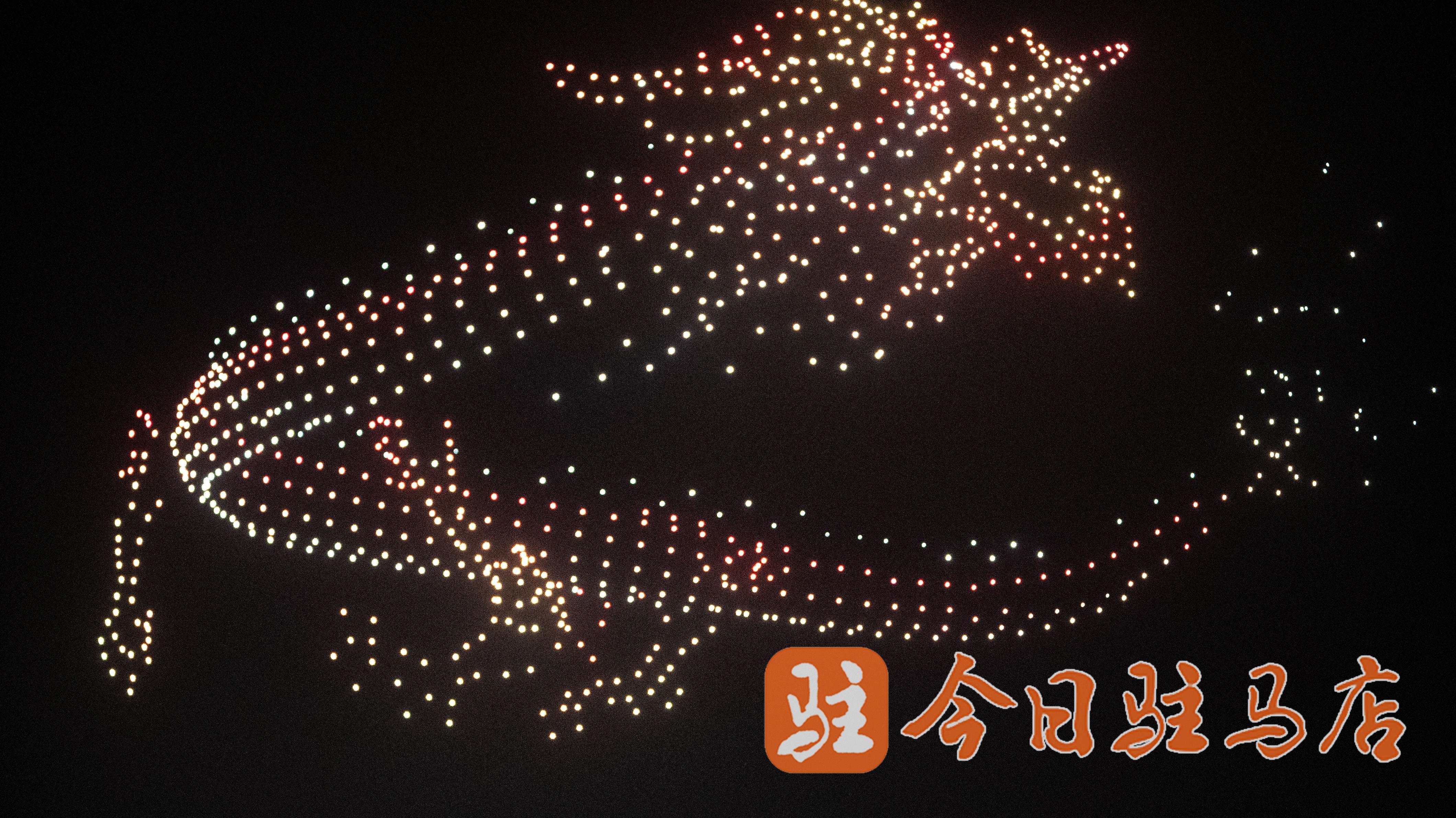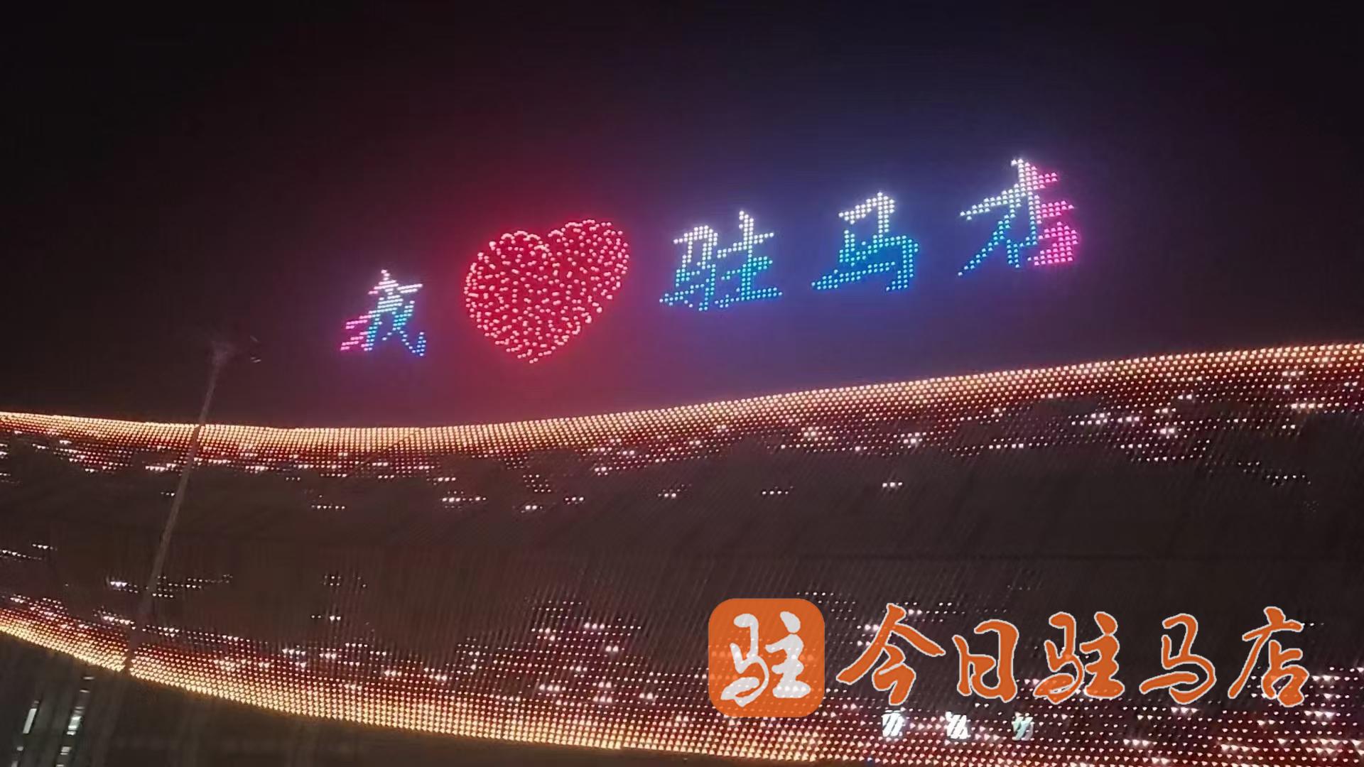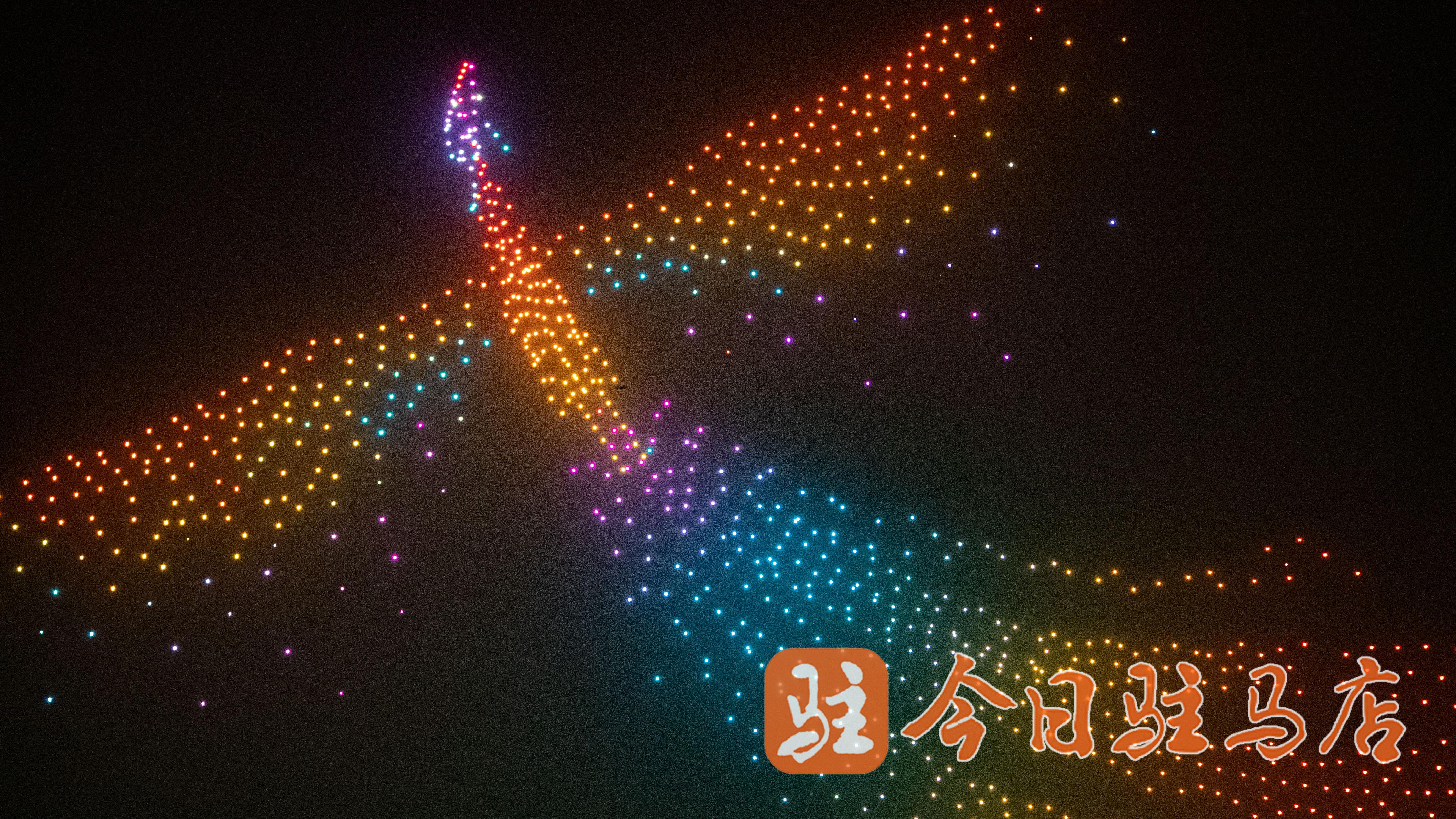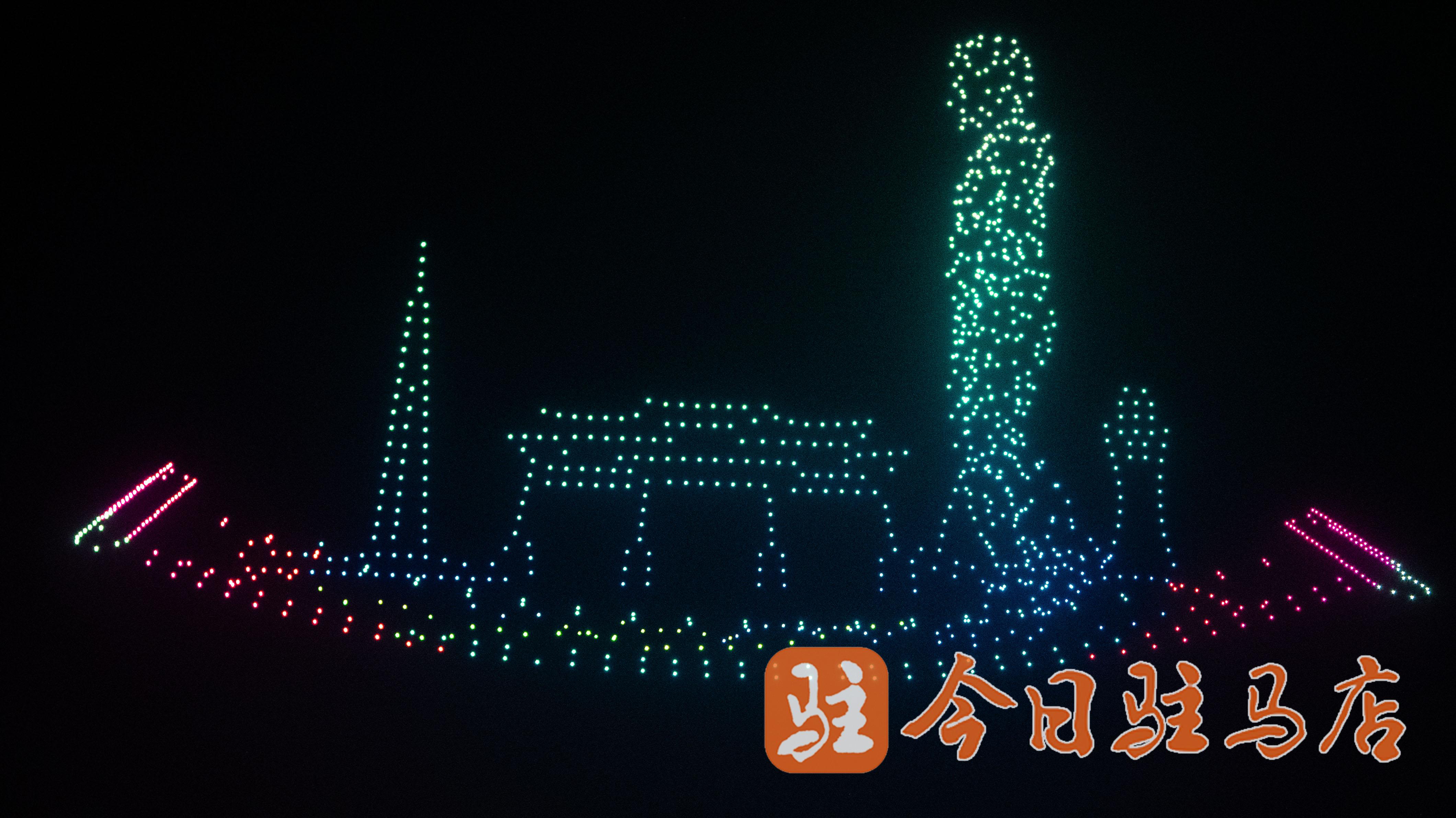 活动现场,千架无人机灵活生动,一幅幅融合驻马店元素的精美图案,点亮了驻马店的夜空。