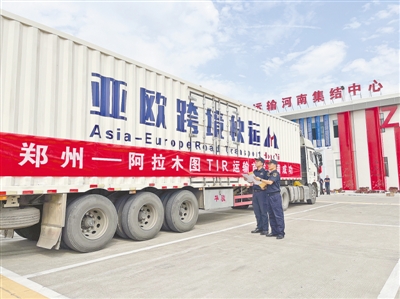 9月23日,载着15.7吨日用百货的TIR车辆缓缓驶出国际公路运输河南集结中心,发往哈萨克斯坦阿拉木图,标志着“郑州—阿拉木图”TIR运输线路正式开通,同时这也是国际公路运输河南集结中心揭牌运营后新开通的第一条国际公路运输线路。