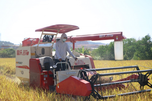 图为新农人李文富驾驶水稻收割机收割烟后稻。武平县局(分公司)供图