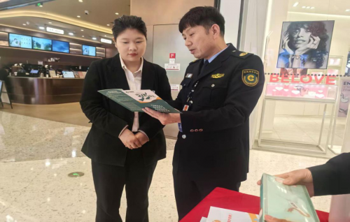 图为:专卖能人工作室万斌与市场监管局在洪山区天街开展3·15宣传活动