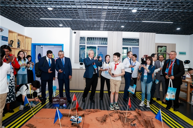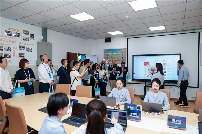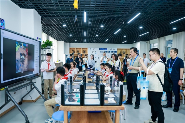 在基础教育观摩点——武汉经开区神龙小学(湖畔校区),通过科大讯飞AI教研平台,实现了线上线下一体化网络协同教研;人工智能创新教育、奇思妙问智能竖屏、AI黑板、智慧课堂等应用为“AI火星车救援挑战”项目式学习提供了重要产品应用和技术支撑;AI运动小站和智慧体测为学生体育锻炼、快乐运动提供了科学评价和指导;五育学生评价采用信息化手段记录学生五育发展轨迹,助力实现“慧生活、慧学习、慧创新”的育人目标。另外,湖北省通过“两平台一中心”(教育大数据平台、教育资源公共服务平台、教育管理指挥中心)实现用户、资源、应用、数据四维互联互通的应用,也在该学校向来宾进行了展示。