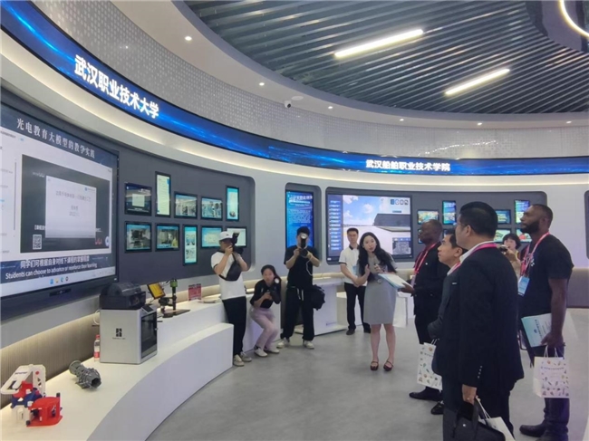 在职业教育观摩点,武汉职业技术大学“追光逐电”专业大模型以讯飞星火大模型为基座,依托学校光电专业学科优势与产业需求,构建覆盖教与学全链条的智慧教育体系,切实推动了“教育链-产业链-技术链”的创新融合。