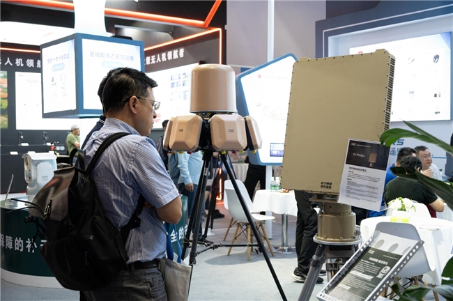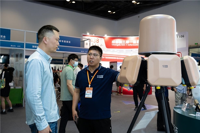 中交遥感展位位于国家会议中心核心展区,通过实物展示、动态演示和沉浸式体验,系统呈现其覆盖“侦、管、控、防”全链条的解决方案。展会现场,中交遥感以“技术实战化、装备体系化”为核心理念,打造了一个集动态演示、交互体验与专业讲解于一体的科技展台,吸引了大量军队、军工单位及行业专家的驻足。
