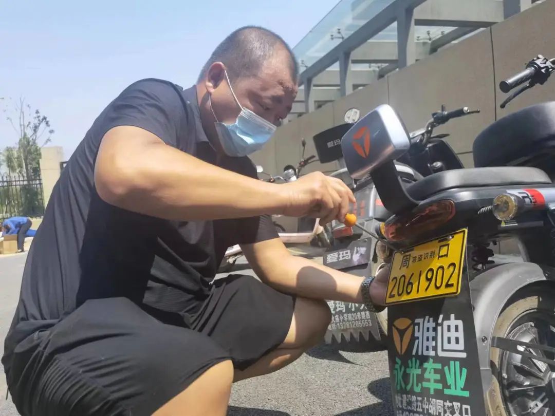 按照事先摸排的情况,搬口办事处在8月13日至8月16日期间,在辖区德和家园、丰和家园、盛和家园以及恒大名都四个小区内设置电动自行车上牌点,需要上牌的群众可携带购置发票、身份证件前往上牌点给爱车领取“身份证”。8月15日上午,丰和家园小区内前来上牌的群众佩戴口罩,拿着上牌所需材料来到现场排队等候,服务人员耐心地为车主办理登记上牌业务,向市民讲解电动自行车挂牌流程,认真核对人员身份信息、购车手续及车辆信息是否一致,快速采集车辆信息并为市民免费安装车辆号牌。