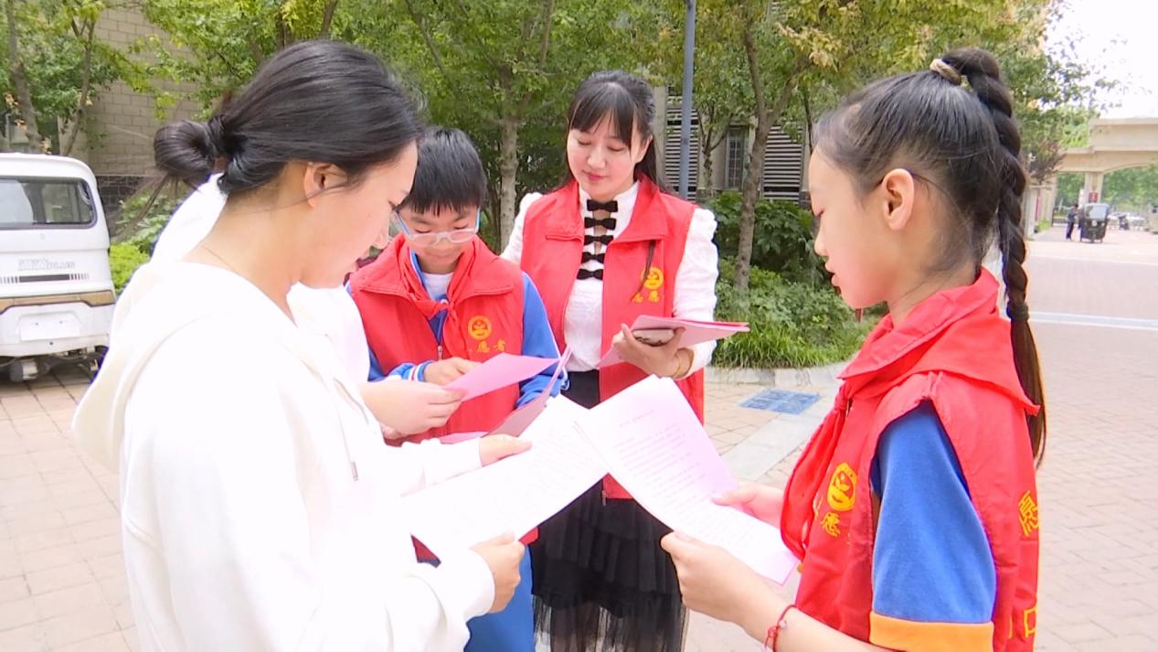 在太昊路办事处东来尚城小区,临港开发区一小的学生志愿者在老师带领下向社区居民发放《勤俭节约、爱惜粮食倡议书》,宣传就餐新理念,倡导科学饮食、勤俭节约的习惯,学生们用自己稚嫩的小手传播文明的力量。