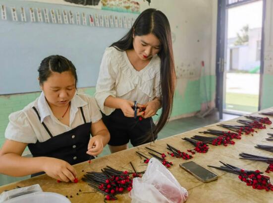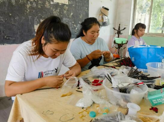 说干就干,刘萍在微信同学群中发出“求救贴”,详细介绍于庄部分村民遇到的困难,热心的同学们也纷纷出谋划策,提供各种金点子。最终,刘萍决定听取同学建议,与浙江一家外贸公司达成协议,通过“村委搭台、企业发包、工坊承揽、居家生产”的模式开展“订单式”编织,拓宽居民就业增收的渠道。“这种手工活不受时间场地限制、计件交货即付款,平均每人每天收入50到100元,目前已有100多名妇女加入进来,她们共制作饰品10万余支,创收约6万元。”刘萍说。
