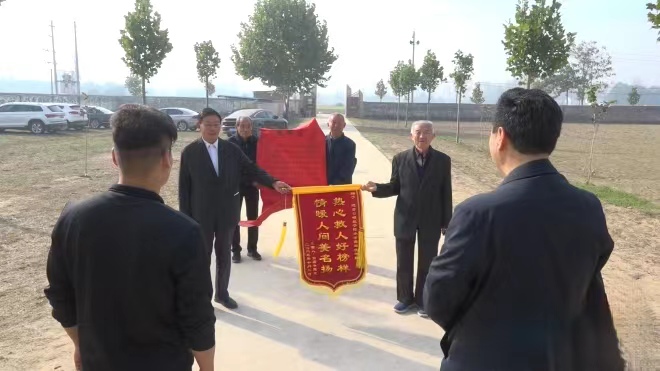 近日,太康县逊母口镇前店村村民牛振东将一面印有“热心救人好榜样 情暖人间美名扬”的锦旗和感谢信送到逊母口镇兰子陈小学老师高继俊手里,感谢他的救命之恩。