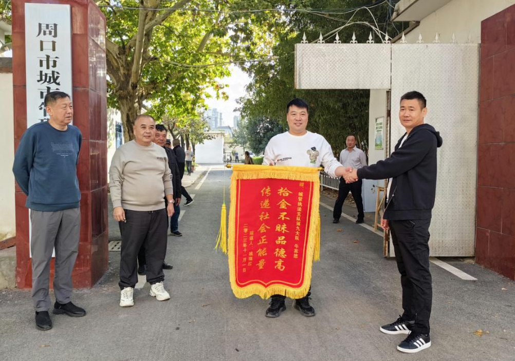 次日,为郑重表达对城管队员拾金不昧高尚品德的感激之情,姚女士的爱人再次来到九大队,送上一面印有“拾金不昧品德高 传递社会正能量”的致谢锦旗。面对失主的感谢,牛苏想表示:“弘扬社会正能量是我们每一名同志都应该做的,遇到类似事情,相信我们城管队员都会这样做的。”