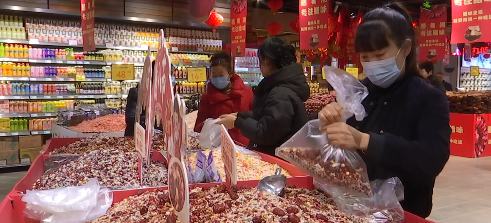 超市主管刘浩东说:“针对腊八节,我们超市在备货方面比平时翻了一倍,库存量也很大,提前准备了红枣等食材。并且为了方便,将商品做成了简易的小包装,便于大家提取食材。”