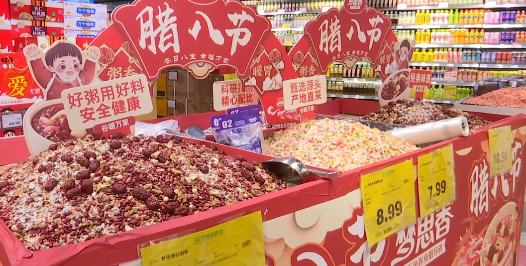 本台讯 农历腊月初八,俗称“腊八”,在“腊八”这一天,我国大部分地区都有熬粥和喝粥的习俗,并延续至今。随着腊八节的来临,超市的腊八粥食材迎来热销。