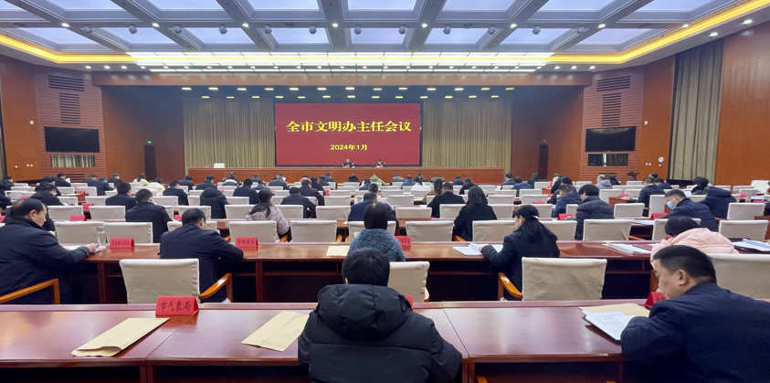本台讯 1月30日,我市召开全市文明办主任会议。会议以习近平新时代中国特色社会主义思想为指导,全面贯彻落实党的二十大精神,贯彻落实全国、全省、全市宣传思想文化工作会议部署要求,回顾总结2023年工作,安排部署2024年重点任务。