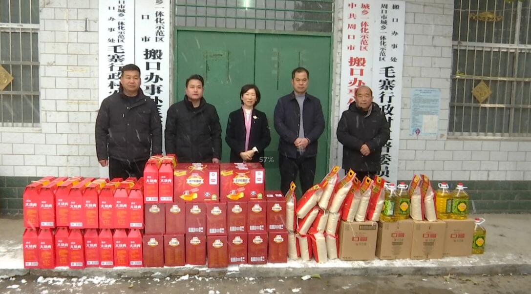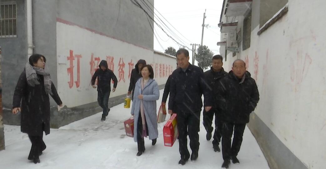 本台讯 风雨送春归,飞雪迎春到。河南省人大代表、周口东新医院院长王淑华刚从省里参加完人代会,冒着鹅毛大雪,2月1日上午,第一时间带着年货到她帮扶的毛寨行政村为脱贫监测户送去慰问,将党惠民利民的会议精神传达到基层,倾听群众声音。她携带米、油、火腿肠、饼干等慰问品,看望慰问这里的27户困难监测户,为他们送去关怀与温暖,让乡亲们度过一个欢乐祥和的新春佳节。市城乡一体化示范区就业促进和医疗保障局局长郭中原一同参加慰问。