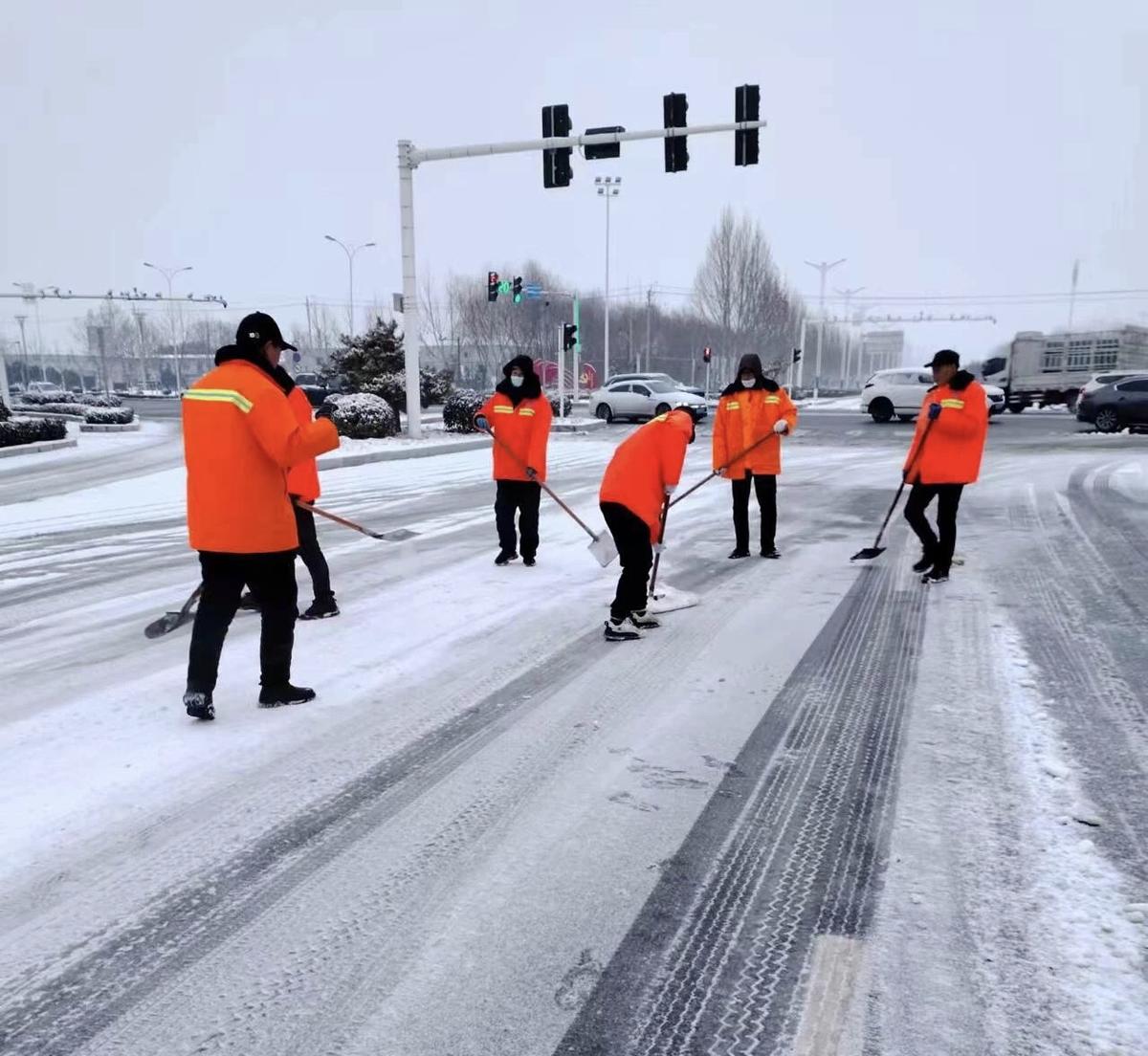 2月2日15时许,在八一大道立交桥上,临港开发区公用事业办正在组织工作人员清理路面积雪,半小时后,主干道积雪已被清理完毕。现场负责人晁中领介绍:“为确保群众出行安全,我们通过铲车机械作业和人工抛撒除雪剂,对全区主干道进行除雪。考虑到夜间温度降低,出现道路结冰,我们派出专人,24小时值守持续开展除雪融冰,确保辖区道路畅通。”