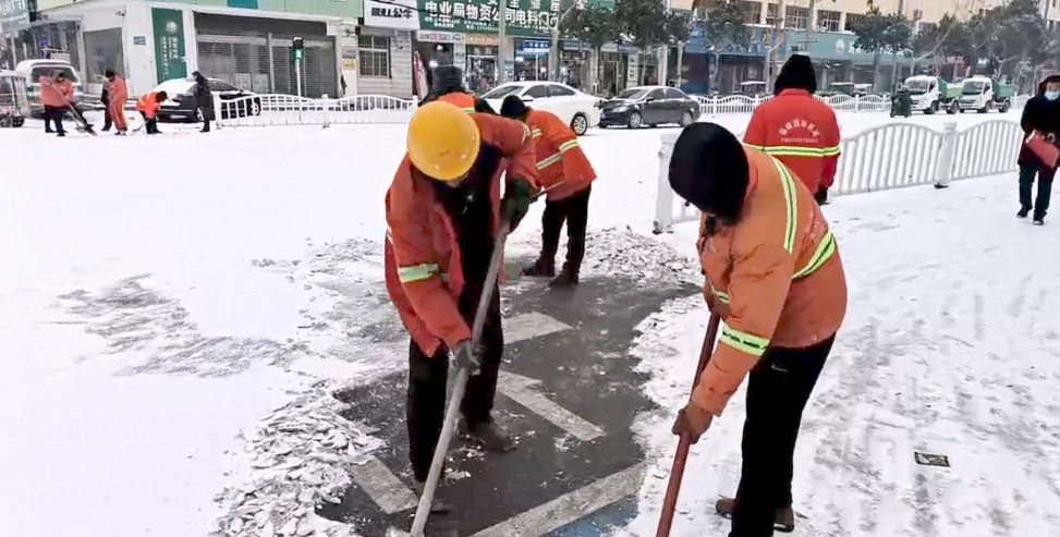 截至目前,商水县共出动人员1000余人次,除雪车4辆、清扫撒水(盐)车6辆、使用融雪剂约20余吨,对县城区主要道路有序进行清理中。