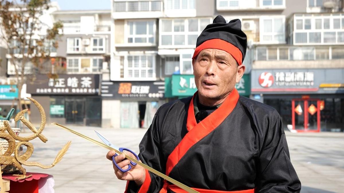沈丘县欧家棕编第六代中国非遗文化传承人欧玉柱:“鲜叶编颜色比较鲜艳,深受广大顾客的喜欢,鲜叶编编个蚂蚱、玫瑰花大概三到五分钟,时间很快,比较简单,干叶编的这种大作品就要一两天的时间,做工比较慢,像这个龙就要两三天。希望通过我们的非遗展示,把我们的传统文化传承下去,向全市人民展示我们的非遗文化。”