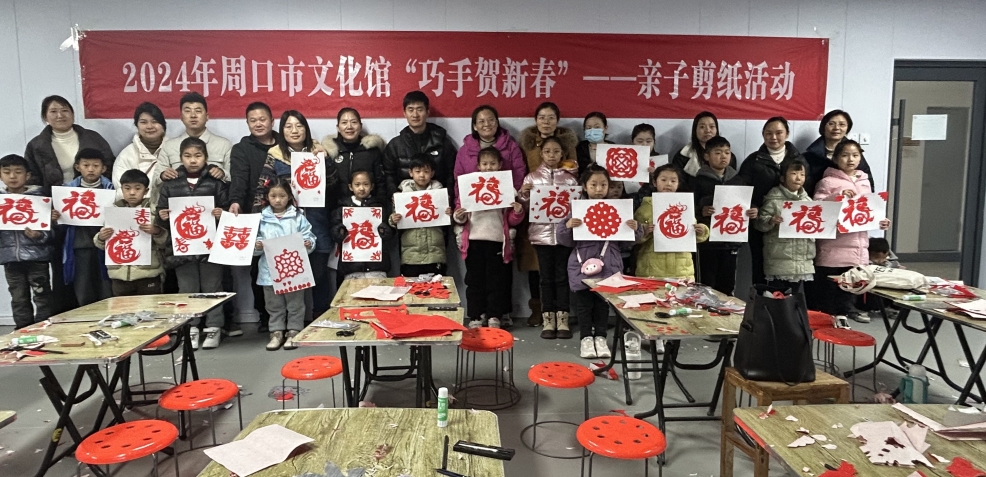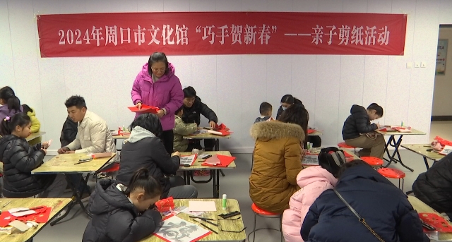本台讯 为了让市民了解、学习民俗技艺,感受中国传统文化魅力,2月15日上午,周口市文化馆开展“巧手贺新春”——亲子剪纸活动。