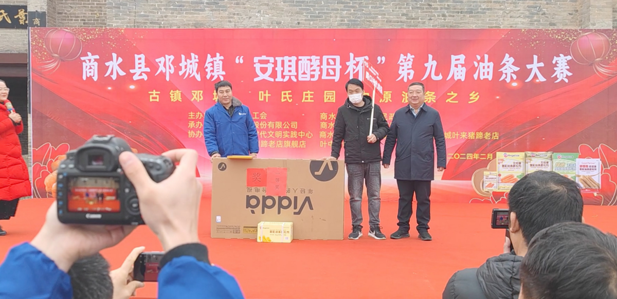 油条大赛经过两个多小时的激烈角逐,随着最后一组选手的操作结束,名次出炉了,当这些“高手”拿到奖品站在讲台上,现场响起了热烈的掌声。来自路口村的李四英、李俊才二人靠着祖传的炸油条手艺,成为远近闻名的致富带头人,这次,他们不负众望拿到了第一名。李俊才说:“今天拿到了一等奖还得了个大电视,特别高兴, 但我觉得我还有进步空间,还得跟老师傅们多学习,过完年我回到我的早餐店 ,继续撸起袖子加油干,把油条炸得更好,让我们邓城油条叫响全国。”