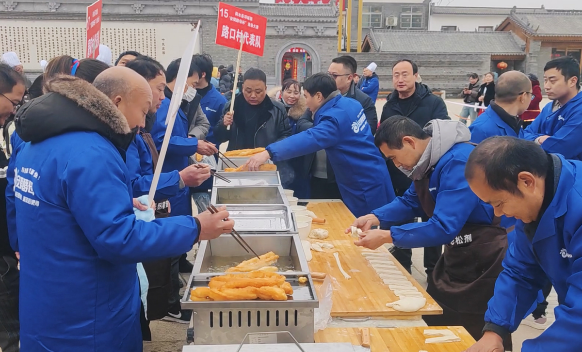 本台讯 2月19日,商水县邓城镇第九届炸油条大赛开赛。外出创业走上致富路的“油条大咖”们会聚一堂,纷纷拿出自家“绝活”,以精彩的“炸”技手艺在油锅前一决高低,勇争“油条王”。