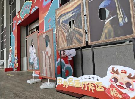 合体名画,光影常在。在市美术馆的名画拍照打卡区,市民可与古往今来的艺术大师进行一次穿越时空的对话。飞花传令,桃李争春。与游走在馆内的NPC进行“飞花令”情景互动问答的市民络绎不绝,在国风古韵中沉浸式体验别样年味,古老文化正在现代生活中焕发新意。
