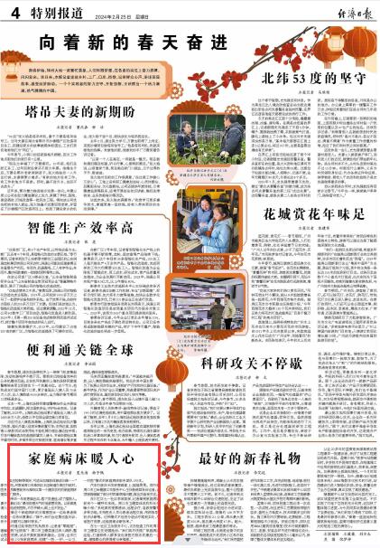 本台讯 2月25日《经济日报》对周口市如何通过延伸医疗机构服务,让患者“零跑腿”,缓解医院“住院难”,周口市卫健委通过深入调研,整合医疗资源,试点开展家庭病床建设的问题进行了详细报道。具体内容如下:
