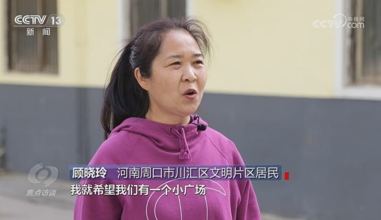 我特别喜欢跳舞,我就希望我们有一个小广场,另外再给我们增加一些健身器材。