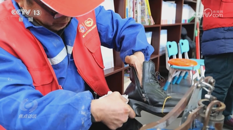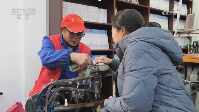 现在,与文明片区一条马路相隔,就是社区为居民们设立的爱心驿站,这里平时是阅览室,每到周二和周六的下午,还会有爱心志愿者团队到这里,为居民们免费提供修鞋、改衣服、配钥匙等服务。这天下午,社区居民党杰就带着穿坏的鞋找到这里。