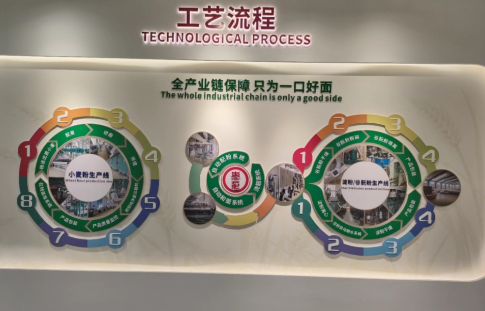 河南枣花面业有限公司董事长孙刚磊说:“我们公司是集小麦种植、订单农业、仓储物流、精深加工、清洁能源循环利用于一体的全产业链企业。从实验室科研到高标准农田小麦示范种植基地,再到现代化精深加工,形成了以小麦为原料多元化精深加工全产业链生产优势。目前,我们公司已处于小麦精深加工领域的领先地位,特别是我们所生产的谷朊粉产品,已被应用于生物制药、功能性食品。 ”
