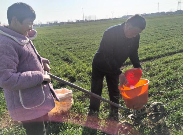 “年关人都没事干,趁天气要抢时间管好麦田,力争丰产增收,保证麦季有个好收成。”梁庙村60多岁的梁前生和老伴边施肥边笑呵呵地说。