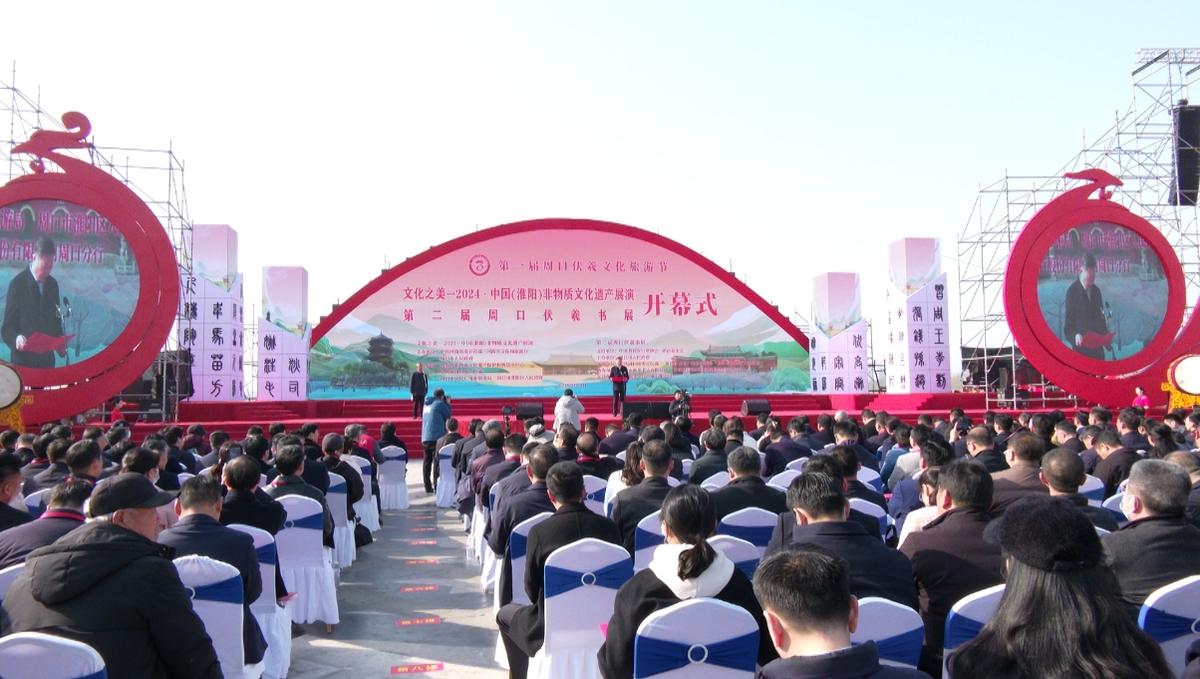 3月11日,文化之美——2024•中国(淮阳)非物质文化遗产展演和第二届周口伏羲书展在淮阳伏羲文化广场开幕。河南省委宣传部副部长、一级巡视员赵云龙,河南省文化和旅游厅党组书记、厅长黄东升,中国非物质文化遗产保护协会副会长亢清泉,中国陶行知研究会副会长、教育部前新闻发言人王旭明,中国书刊发行业协会副董事长王宏经,韬奋基金会副秘书长陈琦,周口市委常委、宣传部长王少青,副市长刘颖出席开幕式。
