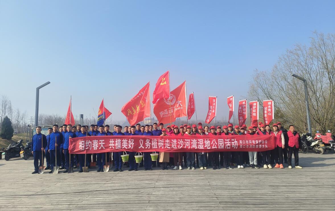 本台讯 3月12日,周口市大铁牛志愿者联合会联合市消防救援支队100余人,到沙颍河湿地公园开展义务植树活动,以实际行动为我市生态文明建设贡献一份力量。