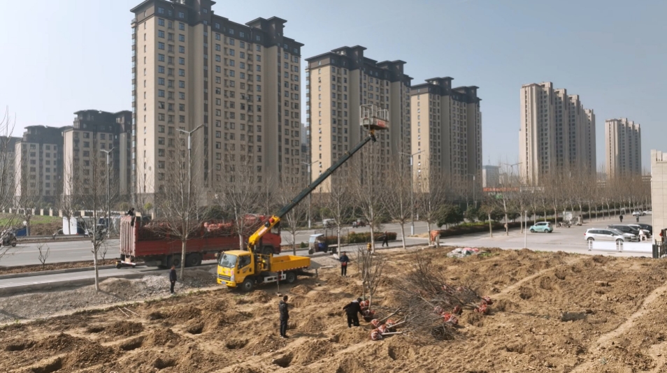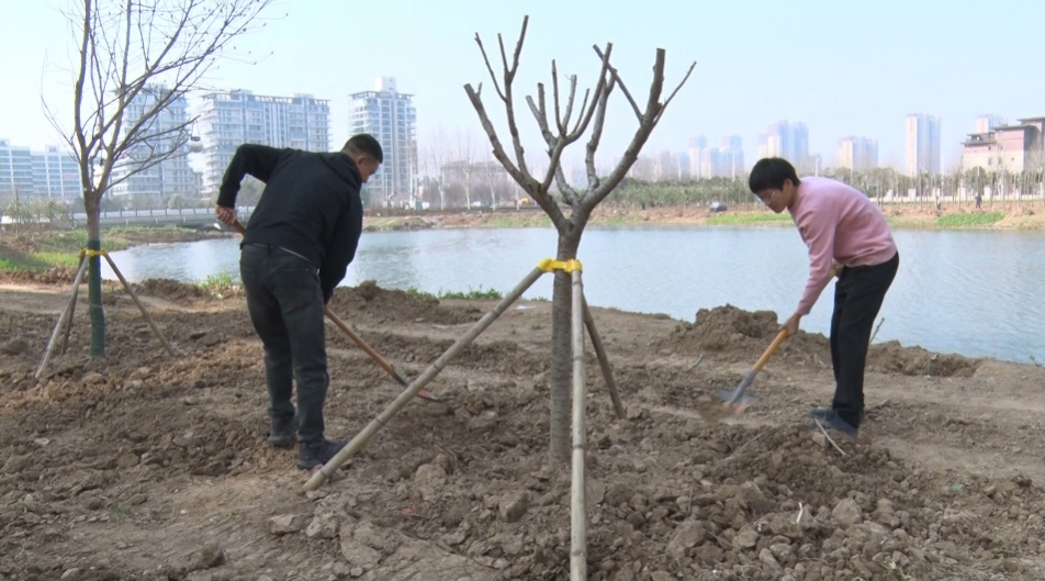 项城市自然资源和规划局党组成员刘自更说:“增绿行动,我们自然资源和规划局承担了11个节点。现在我们所处的位置是天安大道与人民渠交叉口的这个节点,这个节点主要栽的是楸树、大叶女贞,还有桂花。截止到现在,已经完成了百分之八十。为了保证成活率,还有18个月的养护期,进行逐步养护。”