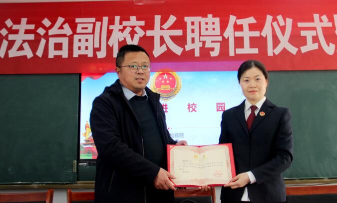 城关镇一中负责人为县检察院未检工作负责人郝俊琳颁发了法治副校长聘书,检察官兼任法治副校长是检察机关履行法律职责的重要形式,也是开展未成年人法治教育的重要举措。