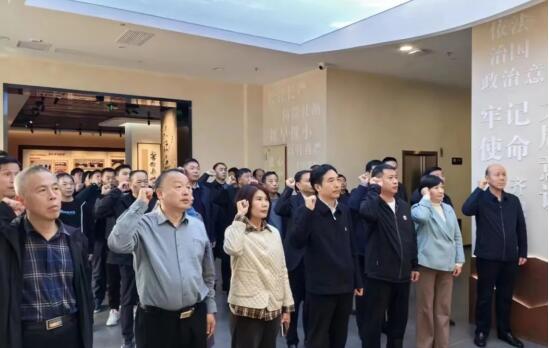 展区运用现代化科技手段,通过雕塑、实物、图片、文字、影视、互动答题等多种形式,全方位、多角度、立体式地展示了党的反腐败斗争历程和重大成效。一个个违纪违法典型案例、一目目生动形象的画面,一个个触目惊心的数字,深刻地揭示了腐败行为给党和国家所造成的巨大损失,警示着参学人员纪律红线不可逾越,最后,全体参学人员在党旗下重温入党誓词。