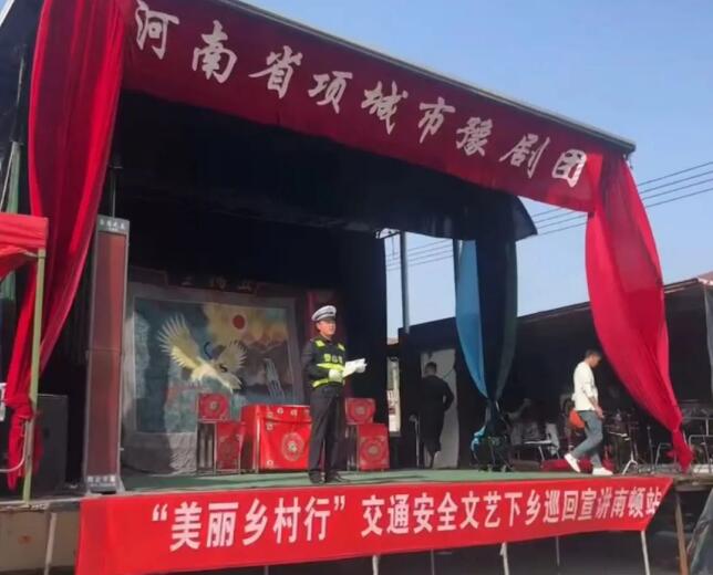 淮阳交警大队联合淮阳区齐老乡杨楼村委,走进齐老乡杨楼行政村宿庄村,巧借农村大戏台,开展交通安全宣传活动。