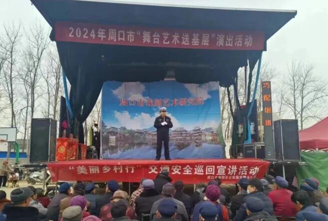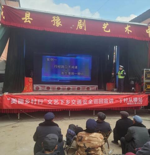 郸城交警大队以辖区丁村乡从楼行政村戏曲下乡活动为契机,组织宣传民辅警进农村开展交通安全宣传,让村民在享受传统戏剧“文化盛宴”的同时筑牢交通安全防线。