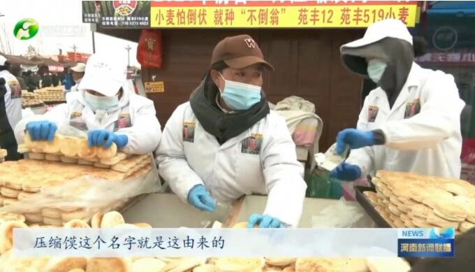 商户马郝君告诉记者:“因为它压缩过,水分少,可以放好久,压缩馍的这个名字就是这由来的。像这个都是改良过的,口感是比较软乎一点,带芝麻的。(口感会丰富一些。营销情况怎么样啊?)销售额这几天都不错,平均下来一天四、五万块钱,预计能十五天,将这个摊位(费)挣下来。”